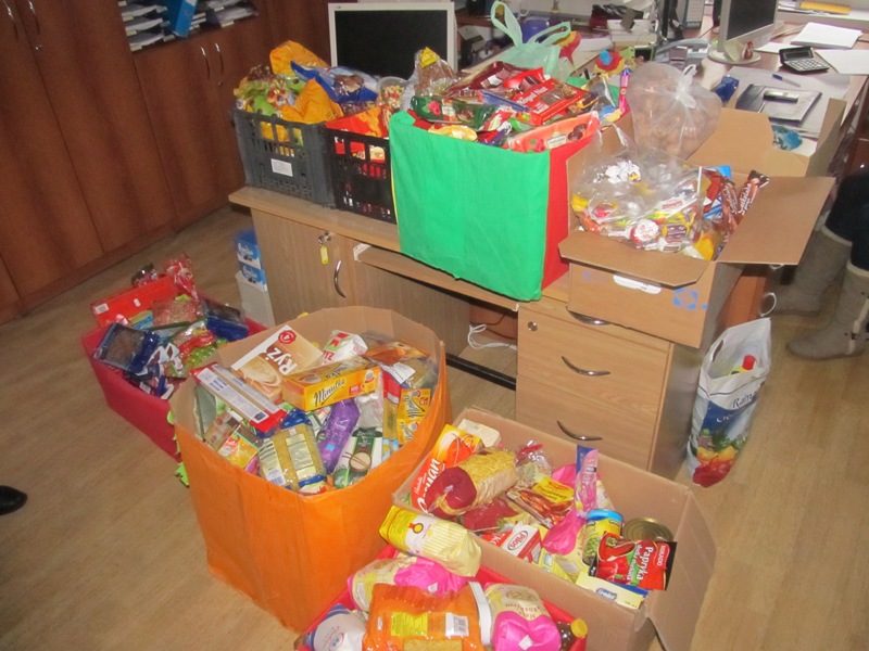 z artykułami spożywczymi dla najbardziej potrzebujących rodzin.